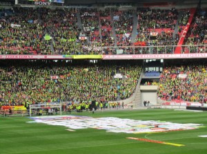 Ik ben voor passend onderwijs. Het is goed, dat kinderen met een handicap zoveel mogelijk opgroeien tussen ‘ gezonde’ kinderen. We hebben er de afgelopen jaren prachtige voorbeelden van gezien, hoe ook deze kinderen d.m.v. ambulante hulp de gewone basisschool kunnen doorlopen. Als deze hulp allemaal wegbezuinigd wordt en nog andere bezuingingen erbij komen, is het onhaalbaar voor leerkrachten om alle kinderen goed te begeleiden. Een treurige zaak, waar ik niet op voorhand mee akkoord ga, dus ben ik vandaag met mijn collega’s in de Amsterdam Arena geweest om te protesteren tegen het nieuwe onderwijs beleid. Ik vrees dat het voor niets is geweest. Dan moeten we binnenkort maar weer de barricades op…………….
