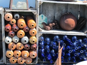 Bij de vuurtoren zagen we allerlei leuke details als versiering. De stapels kistjes, kruiken en flesjes kan ik mooi gebruiken voor de weekopdracht van ‘Stuur een foto’.