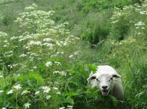 Het hoge gras op de dijk vergde weer speciale spierkunsten, wat vooral vandaag duidelijk voelbaar is. De schapen vonden ons gezelschap wel interessant. Op één speciaal punt is nog een stuk wierdijk te zien, zoals dat vroeger werd gebruikt in de strijd tegen de zee.