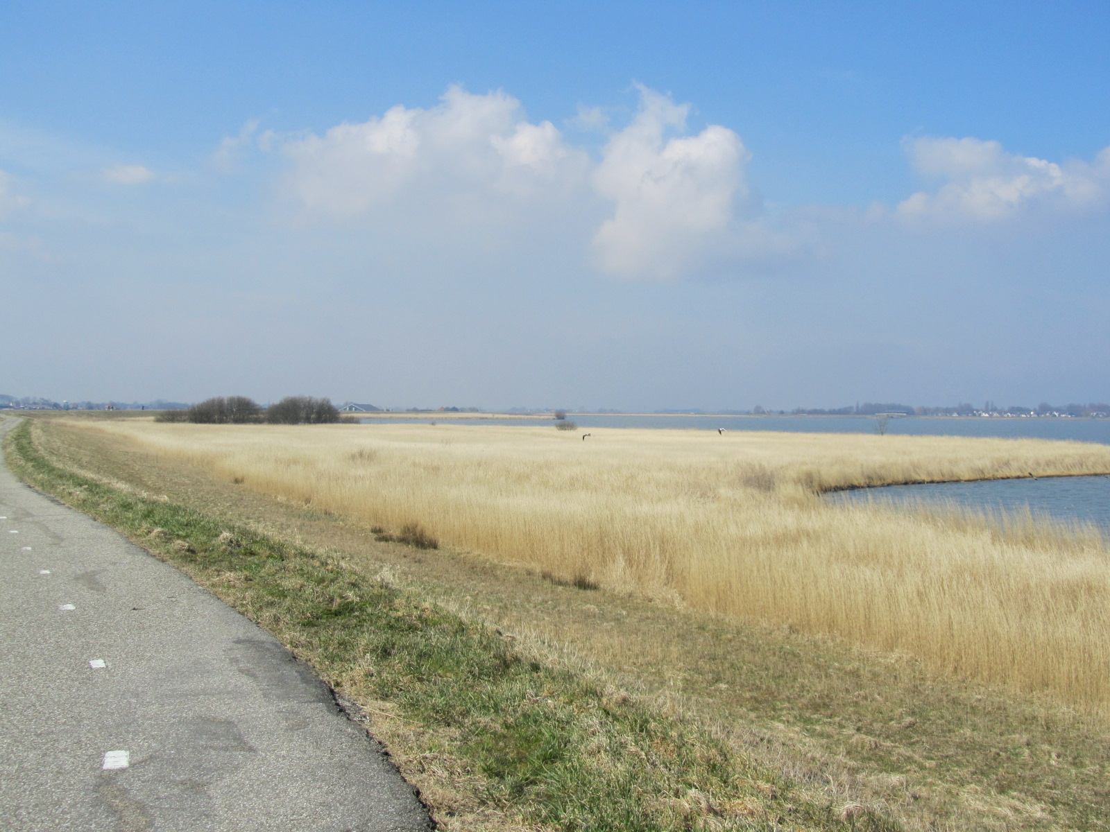 Het land ziet er nog winters uit, maar vandaag hadden we toch voor het eerst een voorjaarsgevoel. Ook omdat we eindelijk weer konden wandelen na gekwakkel met de gezondheid. De weilanden zien nog geel, het riet springt er heel erg uit met zijn lichte kleur. Er waren vandaag heel veel kleuren blauw te zien in de lucht en in de waterpartijen, die we passeerden van Zuiderwoude naar Uitdam en terug. Het blijft altijd een mooie wandeling, temeer omdat het ook een vogelgebied is.