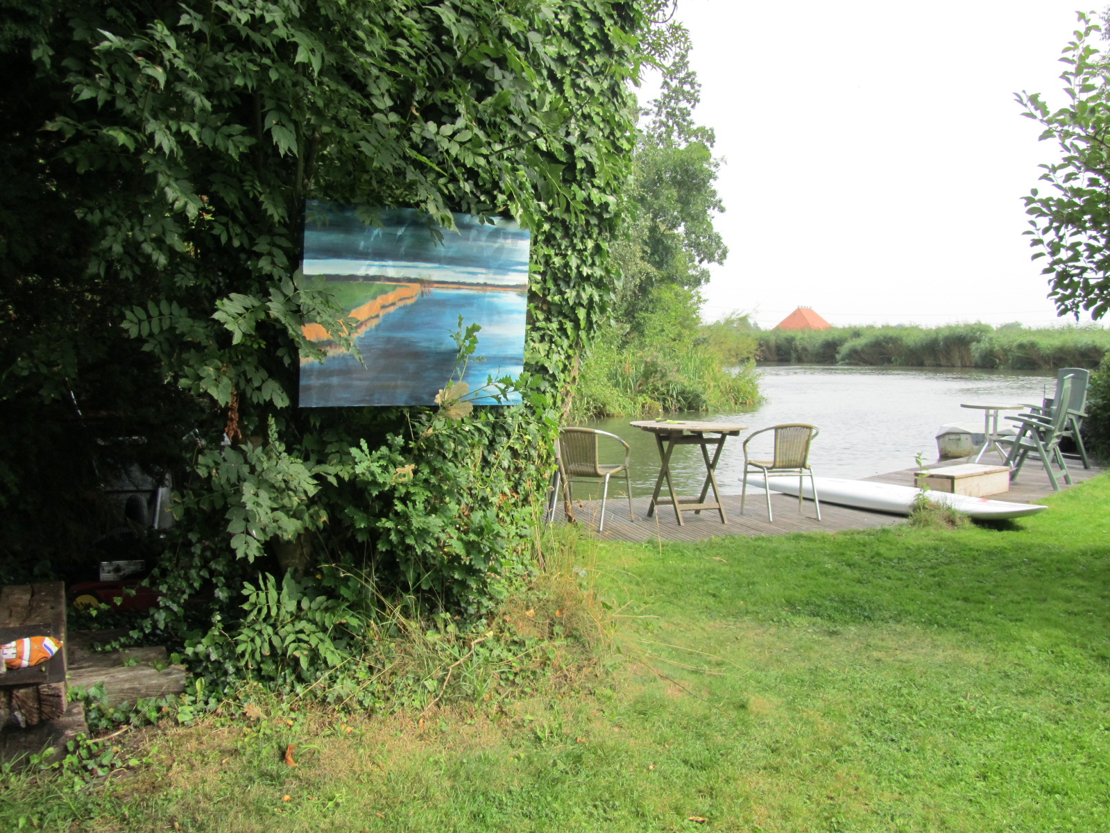 Voor de tweede keer hebben een aantal enthousiaste dorpsgenoten een kunstroute op poten gezet. Vier jaar geleden was het al een groot succes en nu wordt het ook enorm enthousiast ontvangen. Allerlei creatievelingen uit ons dorp presenteren zich met hun werk. Het is heel divers:  fotografie, schilderkunst, beeldhouwen, glas-in-lood, film, zelf een huis bouwen van gerecycled materiaal, een gitaar ontwerpen en bouwen, muziek maken, oude lampen recyclen tot iets nieuws. Zoooooooo leuk en inspirerend! De presentaties zijn bij de mensen thuis of in hun tuinen of in openbare gelegenheden in het dorp. IMG_3567