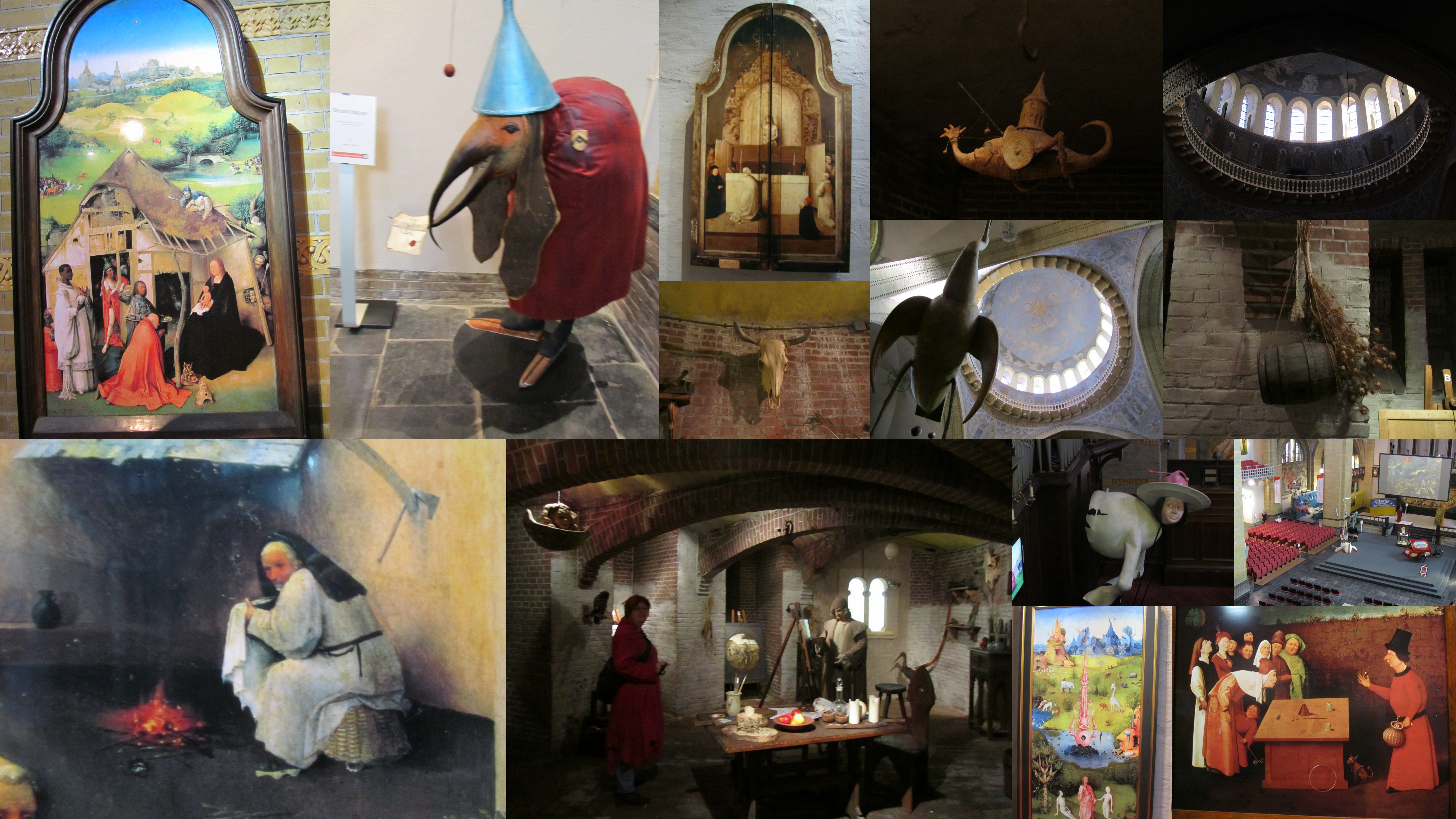 Overal in de stad wordt je herinnerd aan Jeroen Bosch, hetzij in beelden of in namen. Als blijkt dat er een centrum is, dat helemaal gewijd is aan Jheronimus Bosch, dan moet je dat ook even gezien hebben. het was gevestigd in een kerkgebouw, nu omgetoverd tot iets multifunctioneels. Het museumgedeelte was heel informatief met filmbeelden, audiotour bij de reproducties van de schilderijen. In de kerk hingen overal uitvergrootte figuren die voorkomen op de schilderijen van Jeroen Bosch. Je kon met de lift naar de ronde toren van de kerk. Daar had je uitzicht over de stad. Het leuke was, dat men dat in de audiotour gekoppeld had aan de tijd dat Jeroen Bosch daar leefde. In de keldergewelven was de werkplaats van Jeroen nagemaakt. Een mooie hernieuwde kennismaking met Jeroen Bosch.