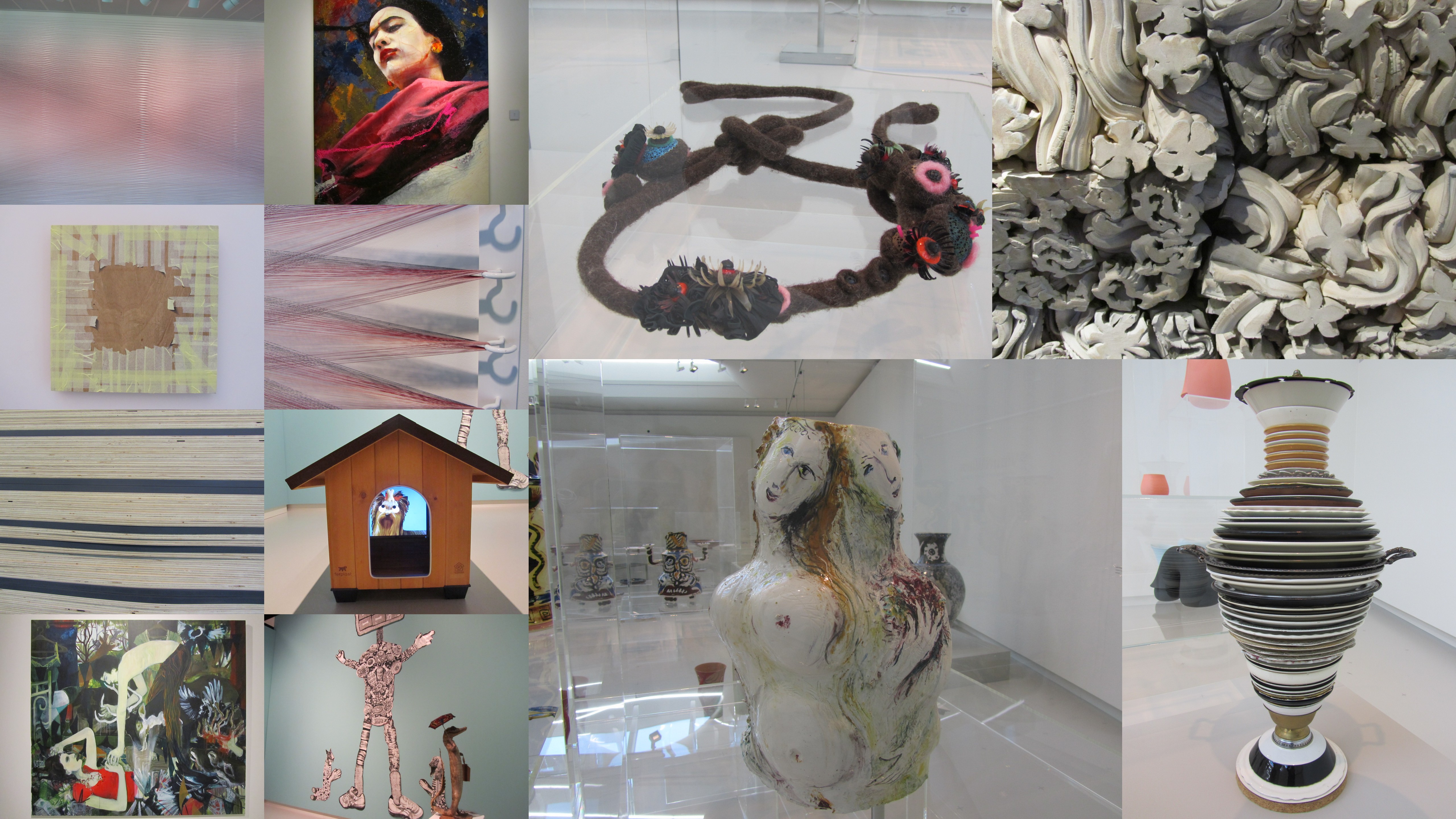 Het was een stralende dag, dus de terrassen waren aan ons goed besteed. Maar Den Bosch is buiten een gezellige stad, ook nog een bezienswaardige stad. Veel mooie gebouwen, pittoreske straatjes, de Dieze die door de stad stroomt, de kathedraal en de musea. Ons hoofddoel was dan ook om het Brabants- annex Stedelijk museum te bezoeken. Ook in Den Bosch (net zoals in Assen) is een mooi oud museum gekoppeld aan een modern nieuw gebouw. In het gedeelte van het nieuwe Stedelijk museum zag je moderne jonge internationale kunstenaars. Talenten van onder de dertig, die hun werk presenteren, variërend van schilderkunst, beeldhouwwerk, fotografie, tekeningen, collages, art video enz. Heel divers en boeiend. In het Brabants museum zag je oude kunst uit allerlei tijdsperiodes van bekende en minder bekende namen. Jan Sluiters was prominent aanwezig, maar heel indrukwekkend vond ik ook de grote doeken van Lita Cabelut . De serie ‘Sterke vrouwen’ zoals o.a. Frida Kahlo en Anne Frank zijn geschilderd in een heel speciale craquelé / verftechniek.