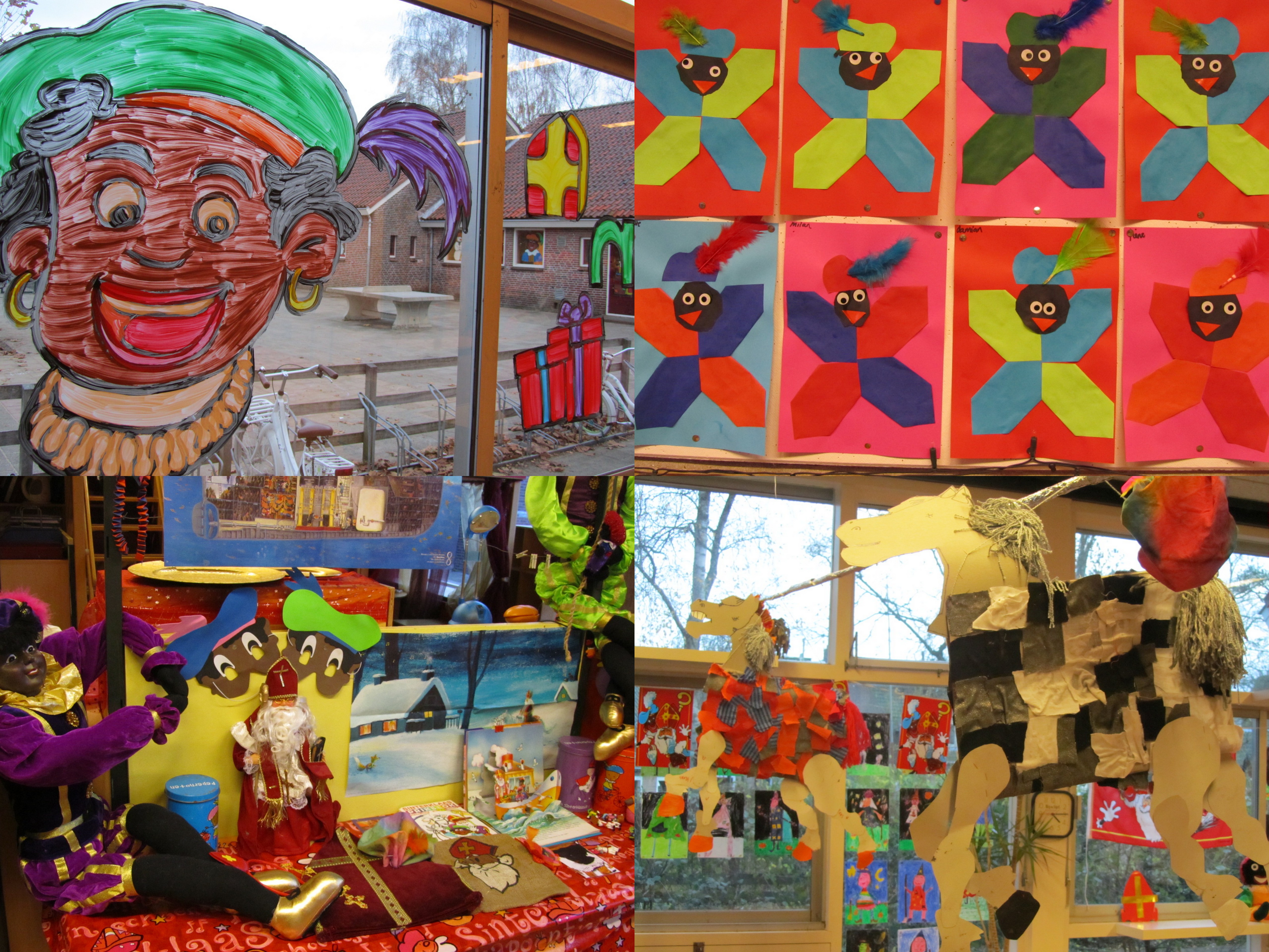 Wij zitten allemaal even recht en wachten met kloppend hart. Maar we moeten nog twee nachtjes slapen en dan? Zou die goeie Sint wel komen?????????????????? Aan de versiersels in school zal het niet liggen. Alles ziet er picobello uit.