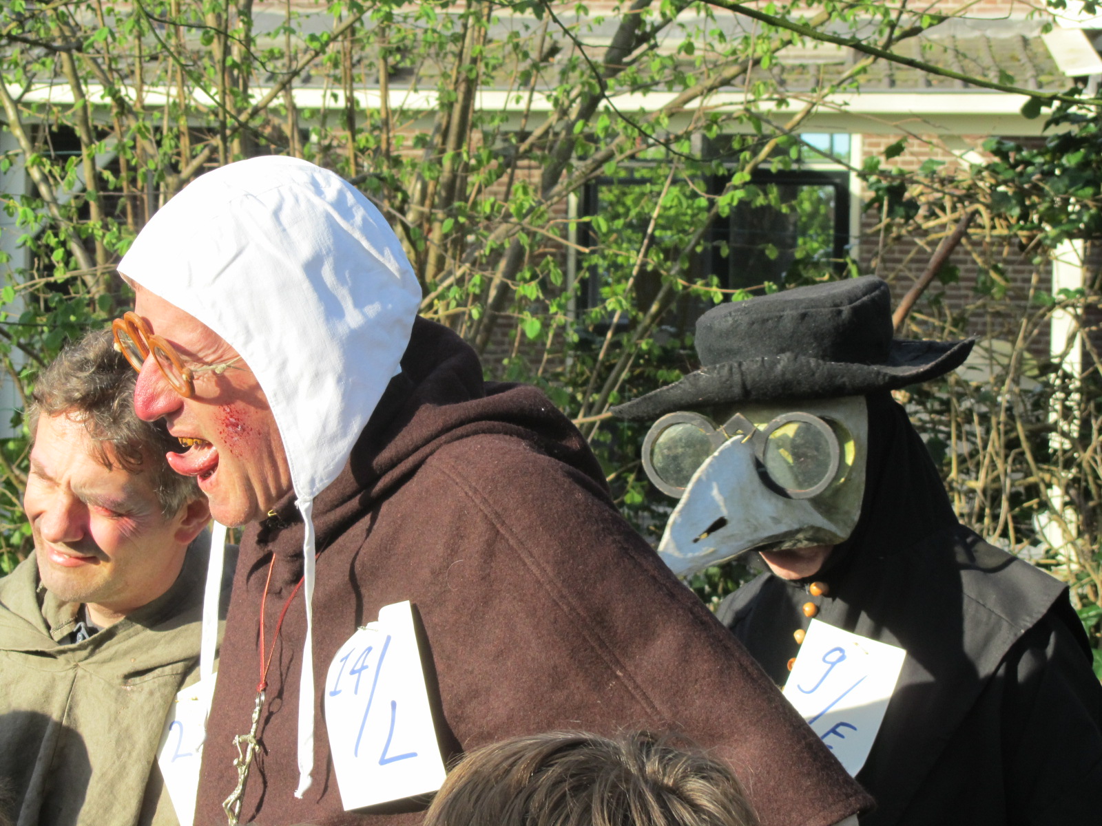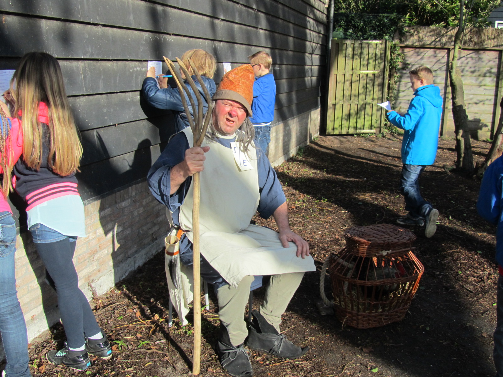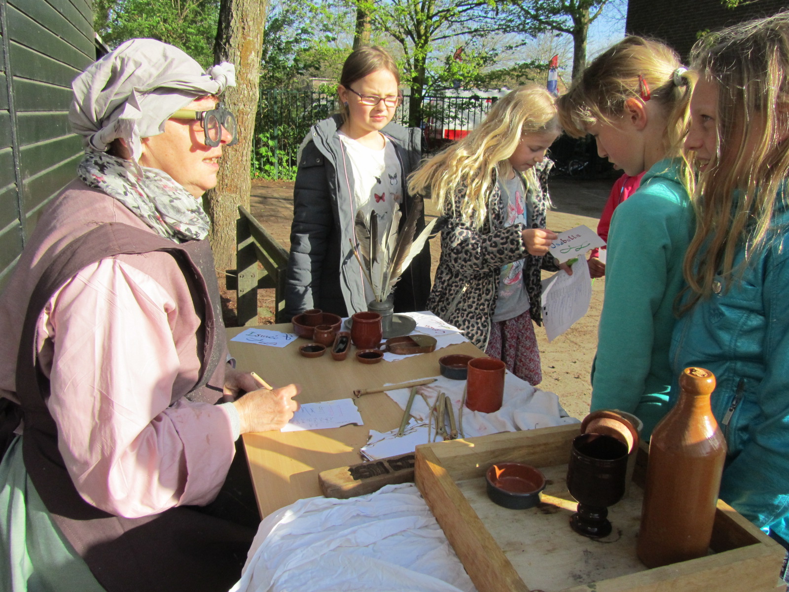 Aanschouwelijk onderwijs noemen we dat. Er kwamen mensen van het Middeleeuws Genootschap Monnickendam bij ons op school. Ze liepen rond als heuse Middeleeuwers over het plein en de kinderen konden alles vragen aan hen wat ze weten wilden. De mensen beeldden beroepen uit zoals chirurgijn, rattenvanger, pestdokter, barbier, schout piskijker enzovoort. De kinderen hebben veel geleerd en genoten van alle acts die tussendoor ook nog gespeeld werden. De Middeleeuwen kwamen tot leven.