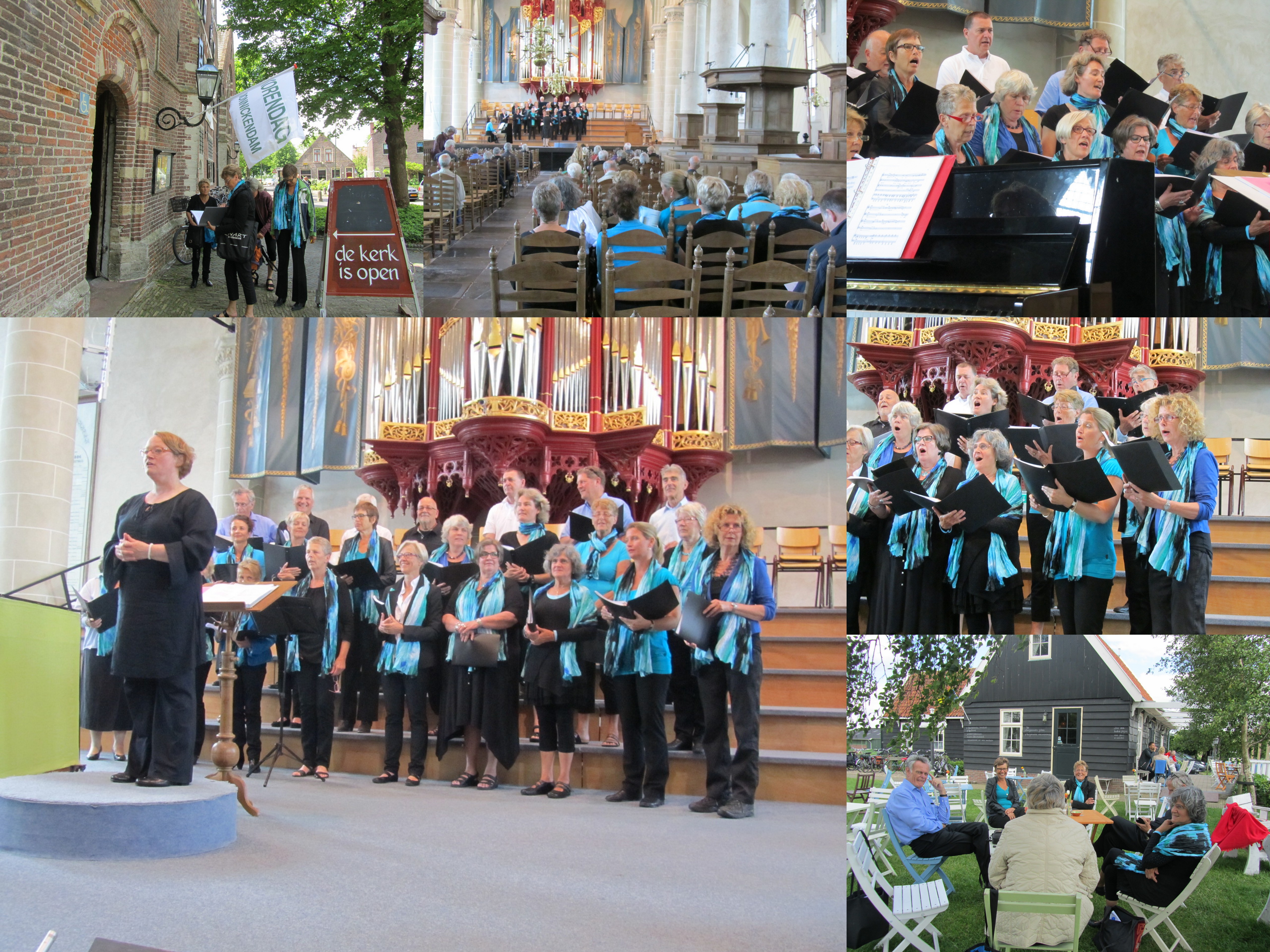Vandaag deden we mee aan de Korendag in Monnickendam. Koren uit het hele land treden daar op verdeeld over de verschillende Monnickendamse kerken. De Koren hebben ook zeer uiteenlopend repertoire. Wij mochten zingen in de Grote Kerk. Vóór ons trad een heel groot koor op uit Ridderkerk met populaire meezing liedjes. Wij hebben totaal ander repertoire namelijk lichtklassiek en ook wel religieus (hoewel we nadrukkelijk geen kerkkoor zijn). De tegenstelling kon dan ook niet groter zijn, maar tijdens ons optreden werd het opvallend stil in de kerk, er werd zeer aandachtig geluisterd. Alles lukte zomaar, wat tijdens repetities zo vaak misging. Wij waren erg tevreden over ons geslaagde optreden. Zo leuk om te doen, ook. De schor gezongen kelen werden na afloop gesmeerd in theetuin Overleek, waar we langs fietsten richting huis.