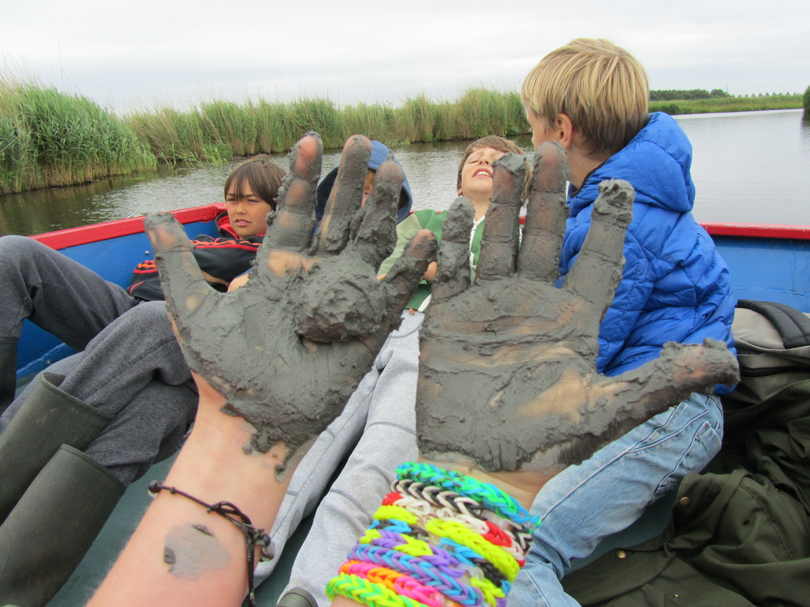 Het was alweer een tijd geleden, dat ik mee ben geweest op excursie. Nu gingen we op de fiets naar bezoekerscentrum Ilperveld. Eigenlijk dicht bij huis, maar het was bijzonder leuk en leerzaam. Eerst deed de klas grondboringen met de gids. Ze boorden oude blauwe zeeklei aan en de oudste grond kwam van 6000 jaar geleden. Dat was strandzand. Eerder kwam ook heel zwavelachtige grond naar boven. De kinderen smeerden zich er allemaal mee in, want dat was het materiaal, dat ook voor modderbaden gebruikt wordt.