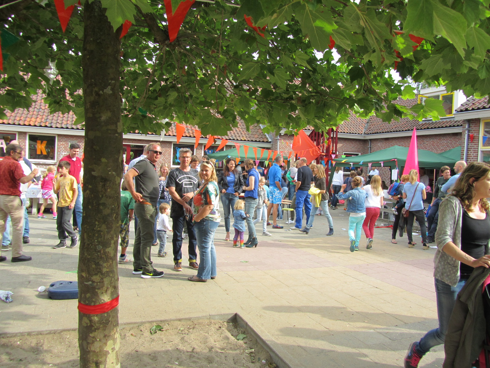 Voor het eerst werk ik op een school waar het gebruikelijk is om het jaar af te sluiten met een eind- of zomerfeest. Een uitgelezen moment voor de ouders, leerkrachten en kinderen om elkaar informeel eens te ontmoeten. Dit jaar hoorde bij de hapjes en drankjes op het plein ook een tentoonstelling van het ‘waterproject’ in de klassen. Twee kunstenaressen hebben in alle klassen met de kinderen verschillende technieken gedaan. Het thema was steeds water of waterland. Er is gekleid over Broek in wonderland, paalhutten gebouwd, (we wonen tenslotte onder de zeespiegel) aquarel technieken zijn beoefend, vissen gemaakt van allerlei kosteloos afval enzovoort. De combinatie van “museum” en hapje /drankje vond ik erg geslaagd.
