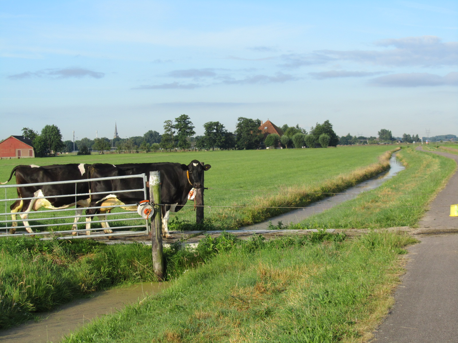 De laatste weken vind ik mijn pad geblokkeerd door gele emmers en touw. De koeien moeten oversteken van het ene weiland naar het andere. Gelukkig blijven ze rustig wachten en bekijken hoe ik onder het touw doorkruip. Als ik zou wachten tot de laatste koe overgestoken is, zou ik te laat op mijn werk komen.