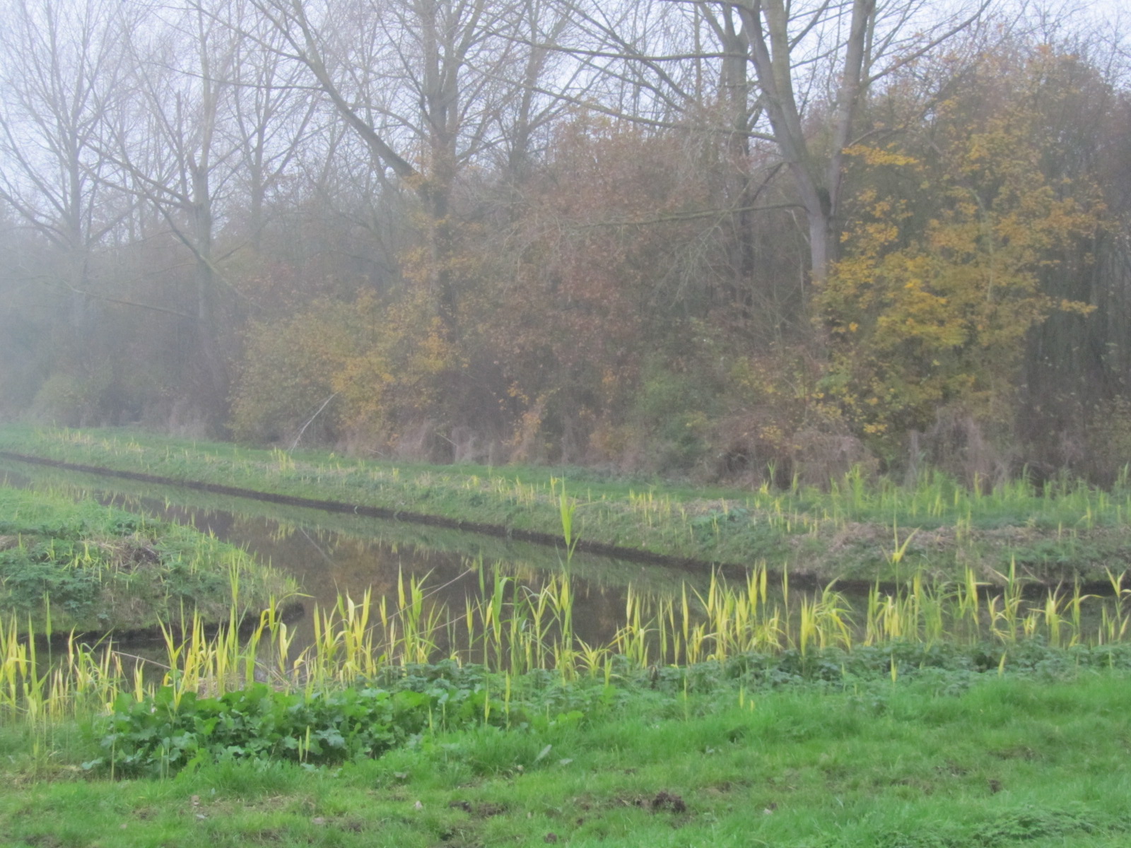 Het zag er niet aantrekkelijk uit buiten. Het bleef maar donker en grijs. We besloten toch even de benen te strekken. Het viel erg mee met de kou, want de oostenwind was gaan liggen. Dus maakten we een groot rondje van een uur. Er waren geen mooie wolkenluchten of vergezichten, maar wat opviel was het frisse nieuwe riet dat uit de grijsheid naar voren sprong en ook nog de kleur van de laatste herfstblaadjes aan de bomen in het Purmerbos. Onverwacht toch een mooie wandeling, waar we verkwikt door thuis kwamen.