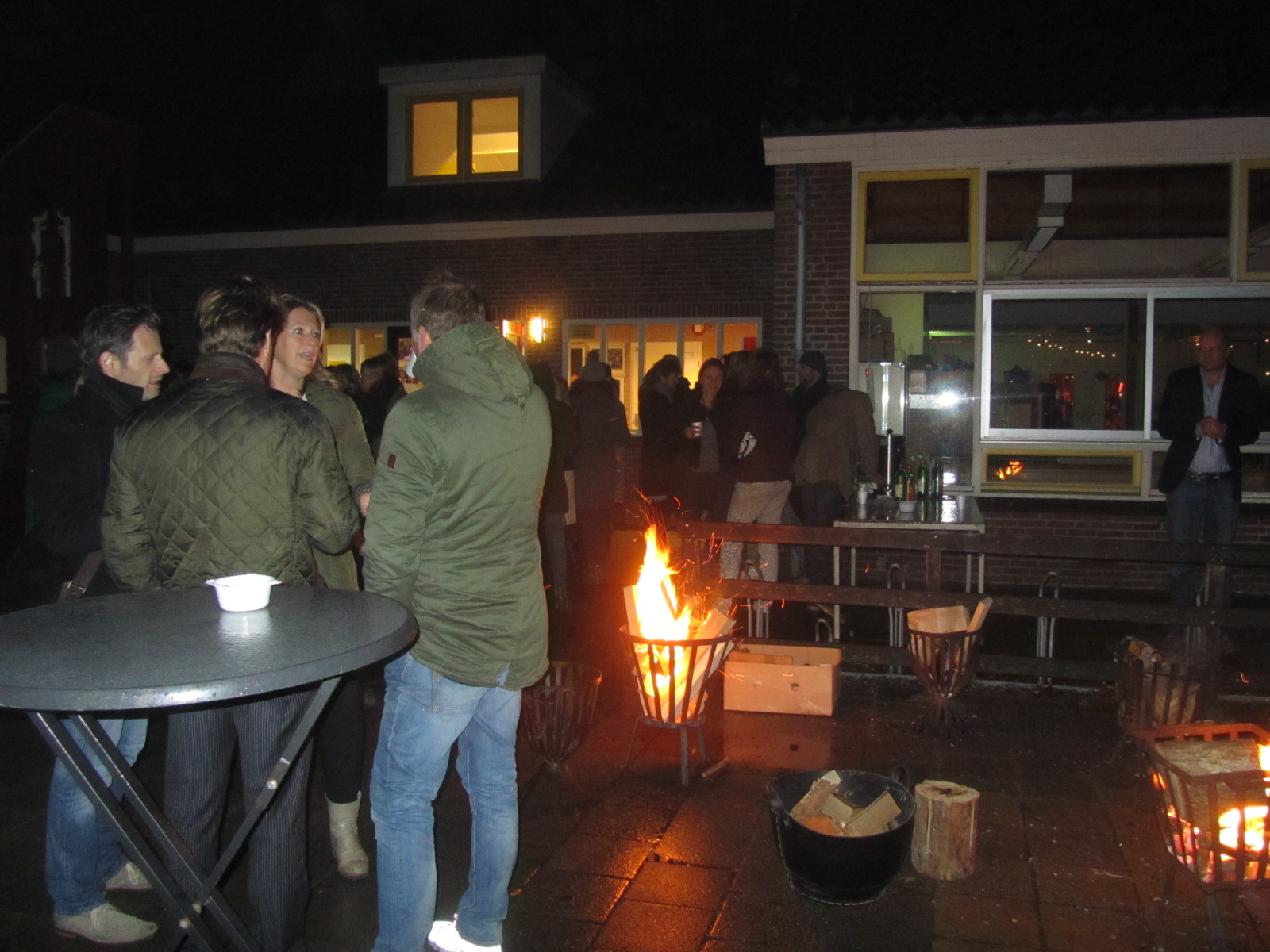 Op het plein wachten de ouders met een glaasje glühwein bij vuurkorven op hun kroost.