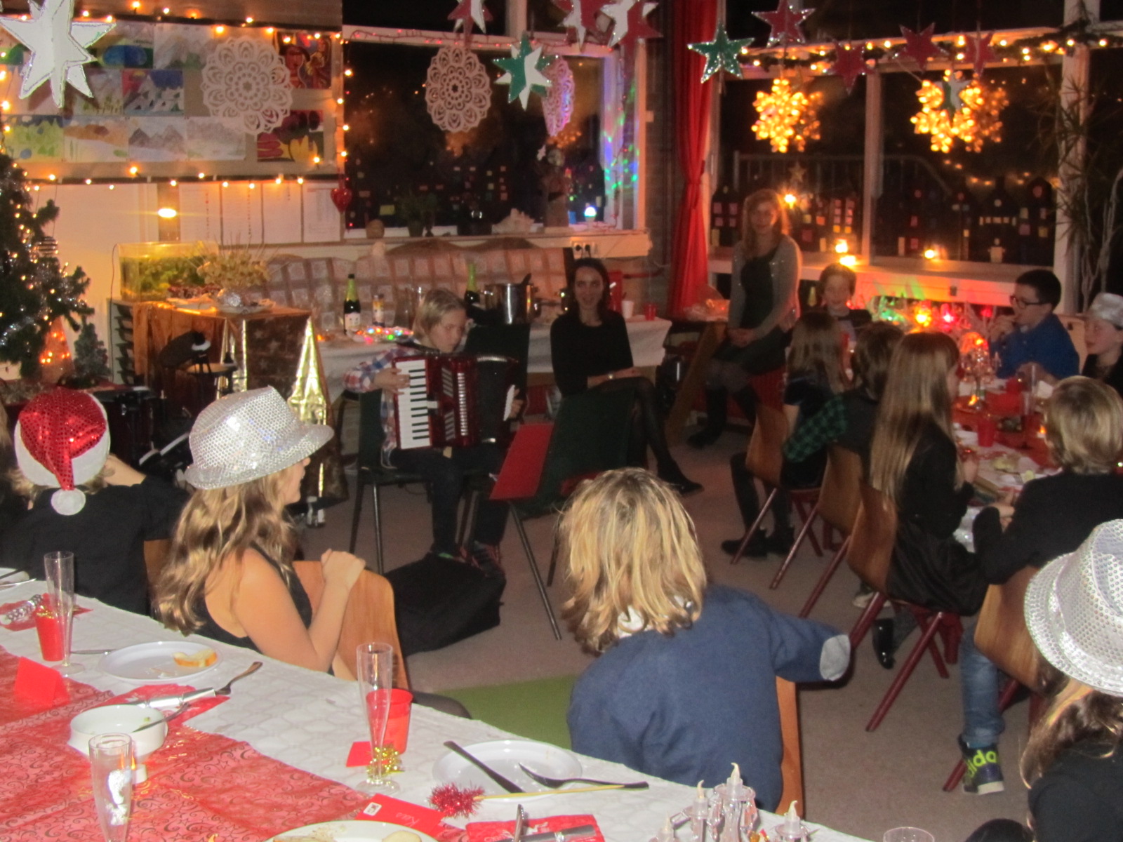 Traditioneel is het jaar 2014 op school afgesloten met het kerstdiner. Het werd een sfeervol samenzijn. In de klassen waren na het eten allerlei muzikale optredens te bewonderen.