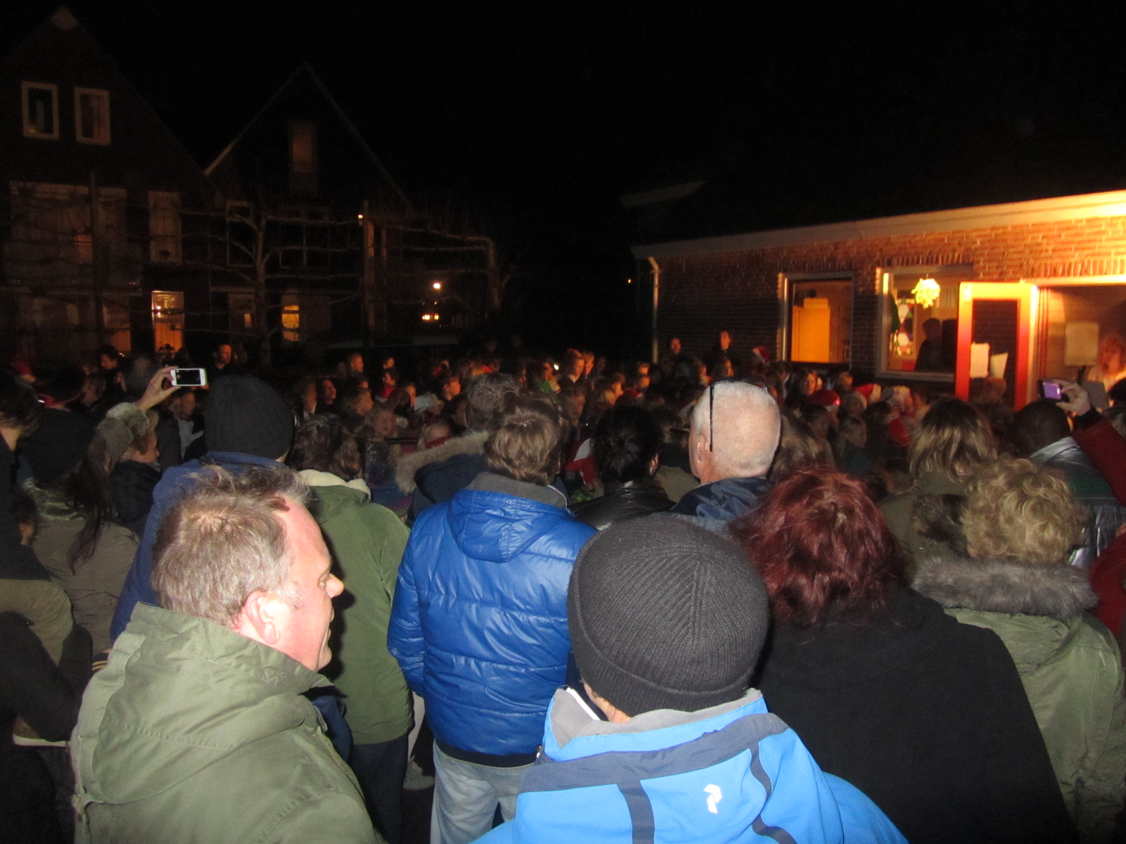Na afloop zongen alle kinderen van groep 5 t/m 8 nog even een aantal gezellige kerstliederen. De goden waren ons gunstig gezind, want na een druilerige dag regen werd het droog.