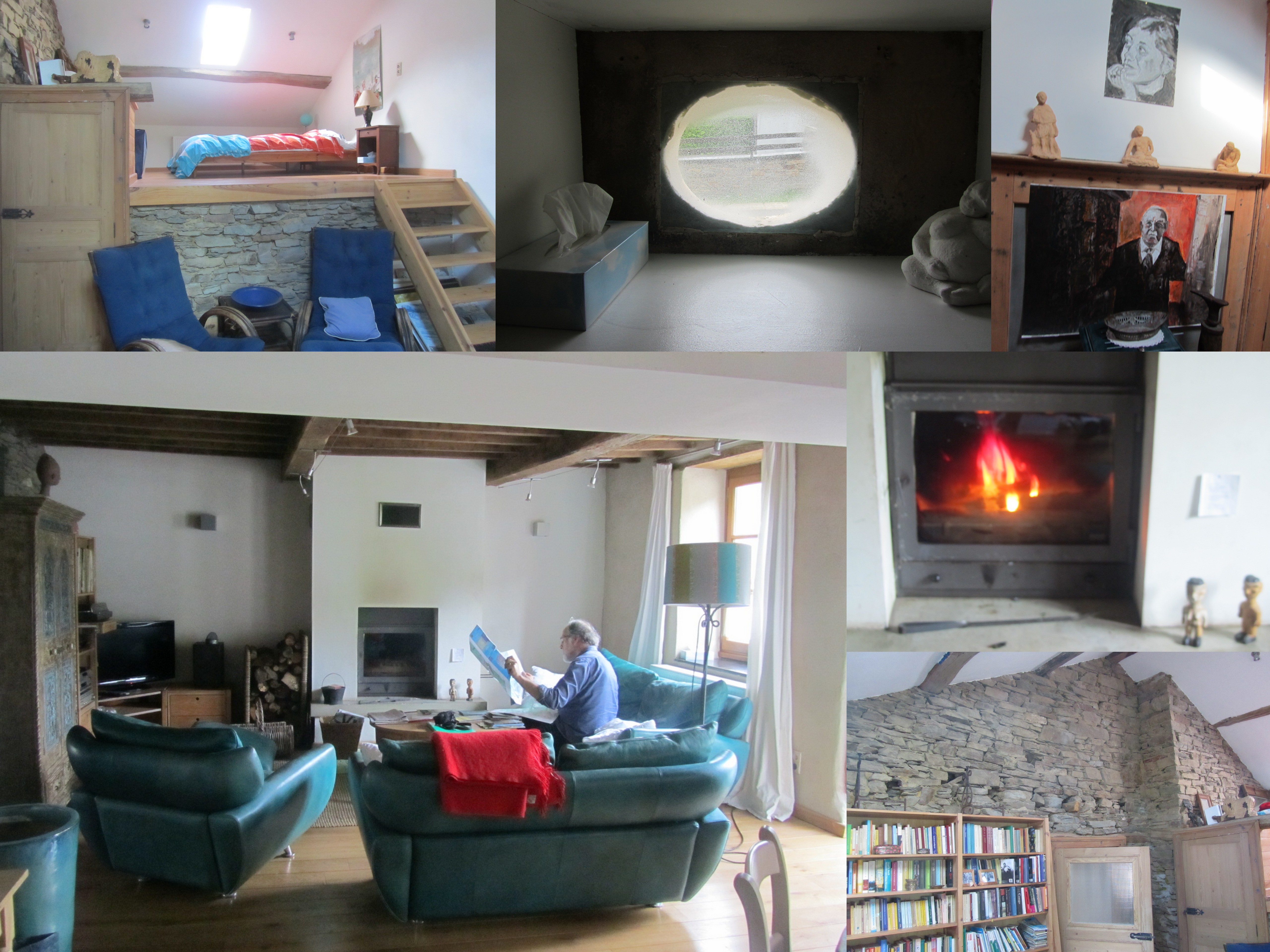 In onze vakanties vinden wij het leuk om van woning te ruilen. Dit jaar stond onze ruilwoning in Haulmé. Het was nog een grotendeels authentiek huis. De muren zijn in die streek opgetrokken uit leistenen, gehaald uit de bergen langs de rivier. Binnen waren die muren ook te zien. Ramen zijn voorzien van luiken en diepe vensterbanken. Elk oud huis in Haulmé heeft een ‘l ‘oeuil de boeuf’ (=koeienoog). Onder dat oog zit een afvoer naar buiten. Vroeger was hier de plek van de gootsteen. Als de afwas werd gedaan kon men ook even een blik op de straat werpen. Verder waren er oorspronkelijk twee stookplaatsen, nu was er nog één intact. Die houthaard zat verbonden met radiatoren door het hele huis. Het zag eruit als centrale verwarming, maar die verwarming werd pas warm als wij de houtkachel opstookten. De avonden waren af en toe best fris, dus wij hebben heel wat fikkies gestookt deze weken. Met wat moderne aanpassingen was dit oude huis gerieflijk en gezellig.