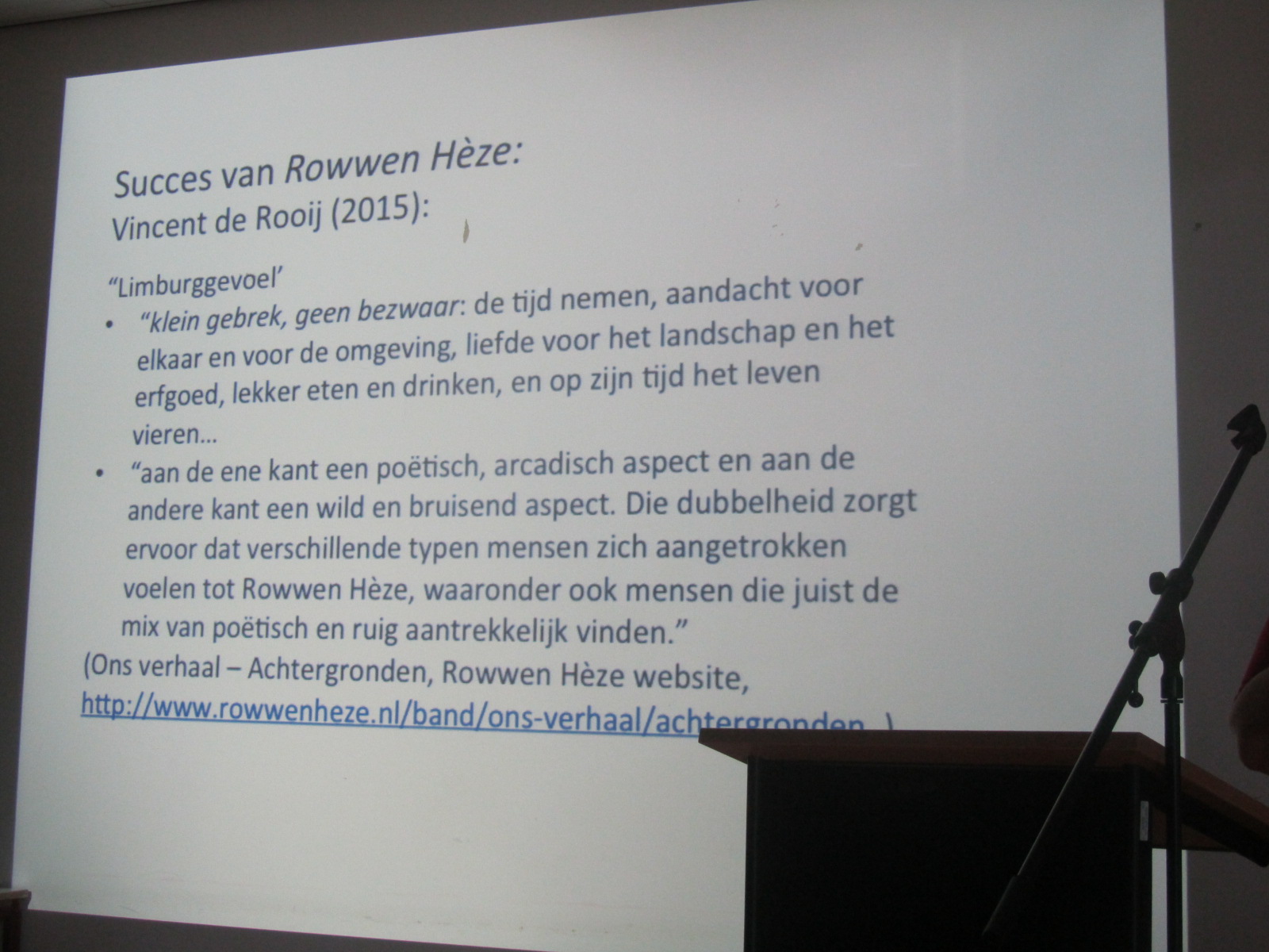 Vandaag ben ik naar de open dag geweest van het Meertensinstituut. Buiten dat ik het eens leuk vond om te zien wat dat instituut nou zoal doet, was de directe aanleiding een lezing van Leonie Cornips over de betekenis van de Limburgse band Rowwen Hèze voor fans.
