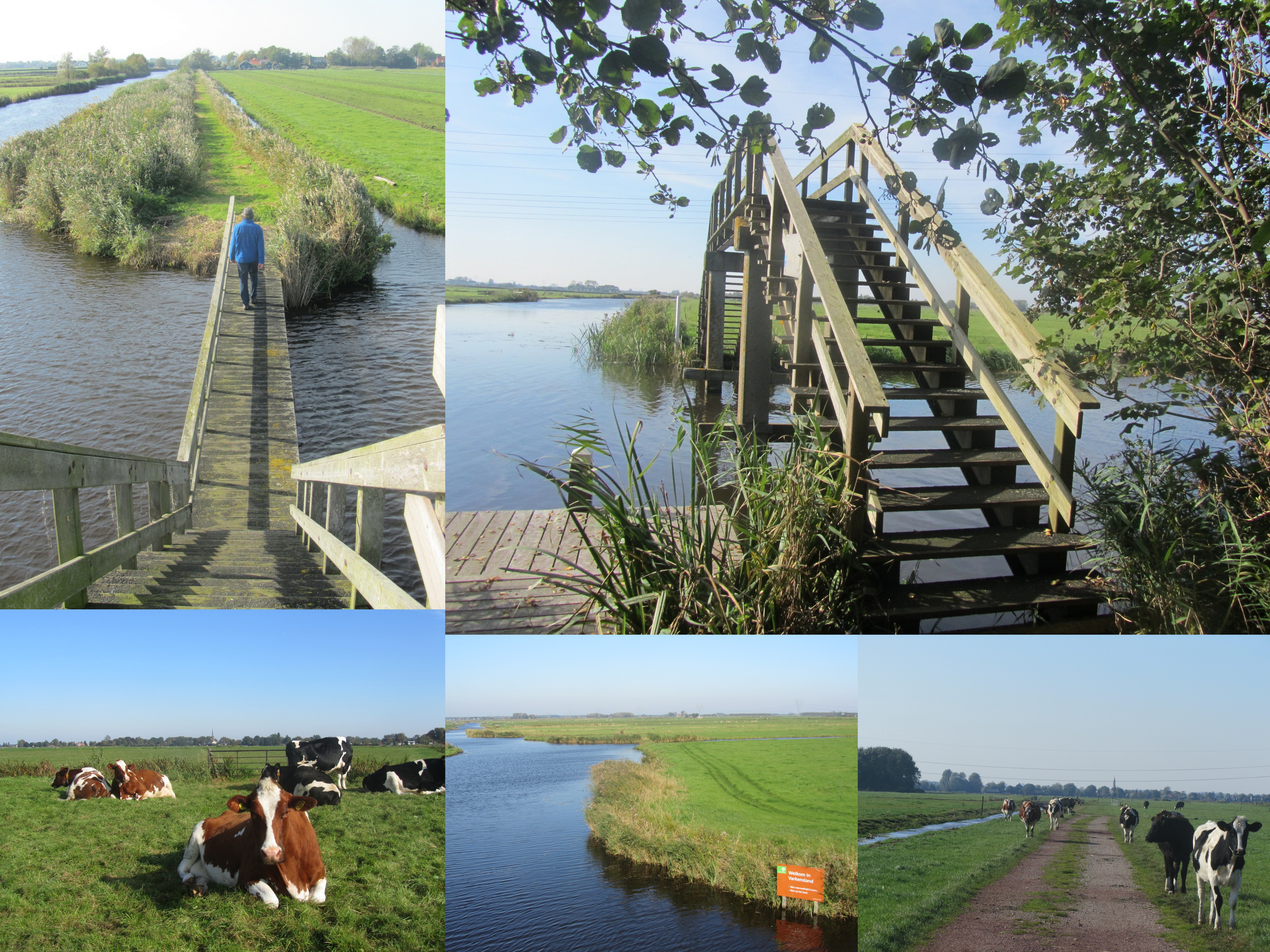 Vanuit Broek in Waterland gingen we richting Watergang over het Laarzenpad. Onverhard wandelen betekende vandaag, dat er veelal niet eens een pad was uitgesleten in de weilanden, maar dat we zelf onze route maakten van het ene witte paaltje naar het andere tussen de koeien door. Gek genoeg heet het land hier Varkensland.