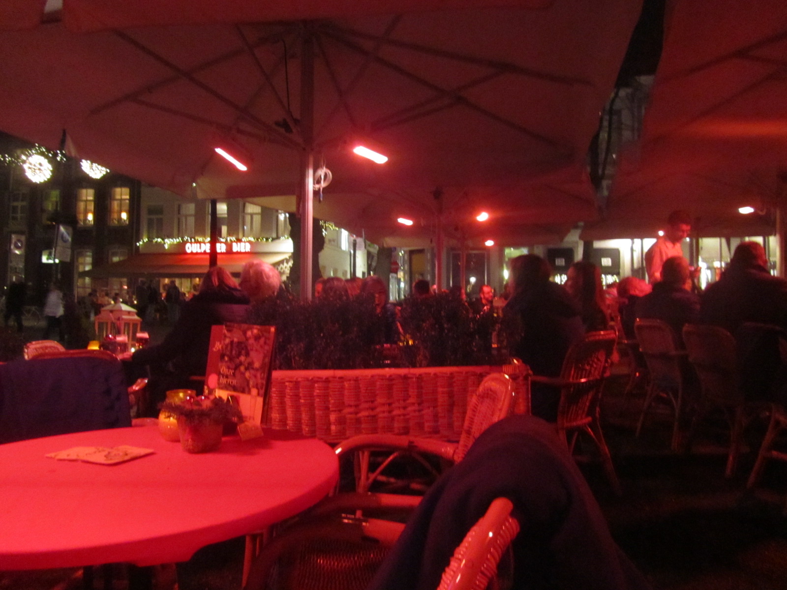 We genoten van onze wandeling. Maar wie zal ons geloven, dat wij om 9 uur ’s avonds heerlijk gingen zitten op het terras van het O.L. Vrouwenplein onder het genot van een wijntje. Wij waren niet de enigen, de terrassen waren overvol!