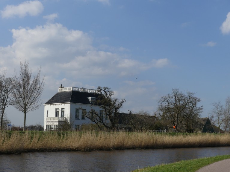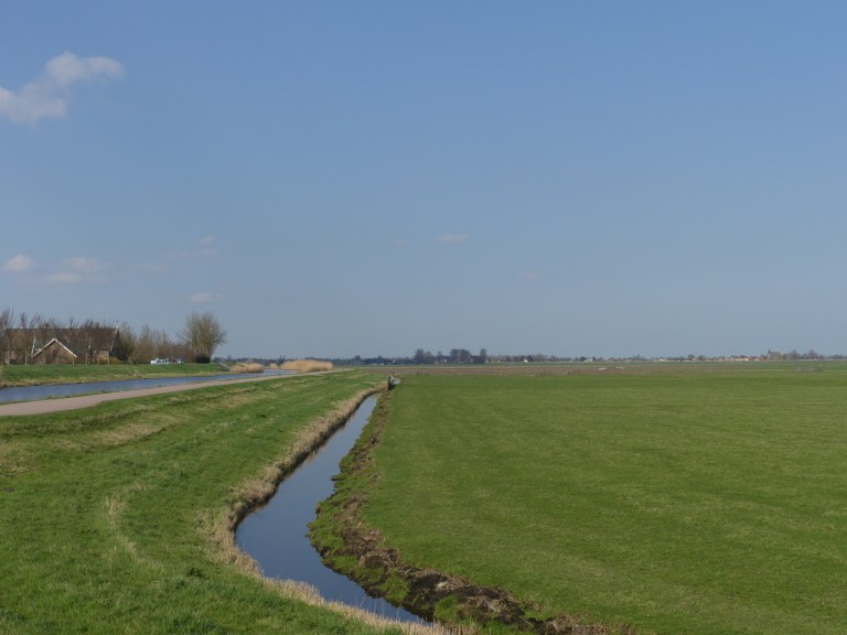 De zon nodigde uit om te gaan wandelen. Dit keer startten we in Beets. Langerekte huizenrijen langs de Beemsterringvaart. Rondom de kerk zit er nog een uitstulping van een nieuwbouwwijk. Het monumentale gebouw aan de overkant van het water, in de Beemsterpolder,  ligt er nog steeds majestueus bij. Ik wandelde hier al vaker en ook in 2005 en in 2009 is dit markante gebouw op de foto gezet.Alle kanten op is het een echt Hollands landschap. Parallel aan Beets, maar wel 3 kilometer verderop ligt Oudendijk. Ook weer langgerekt langs een water, ook mét kerk en een kleine nieuwbouwwijk. Stereotiep voor Oudendijk is de oil fabriek, waarmee het dorp zich in de skyline onderscheidt.