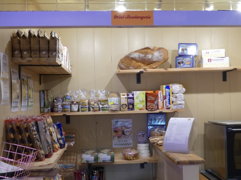 Sinds een maand heeft ze de winkel vergroot met een hoek, waar ze brood verkoopt en stokbrood en allerlei broodjes bakt. We kunnen nu zelfs op zondagochtend ons warme stokbrood halen in de Mini Boulangerie. Daar krijg je toch een echt vakantiegevoel van.