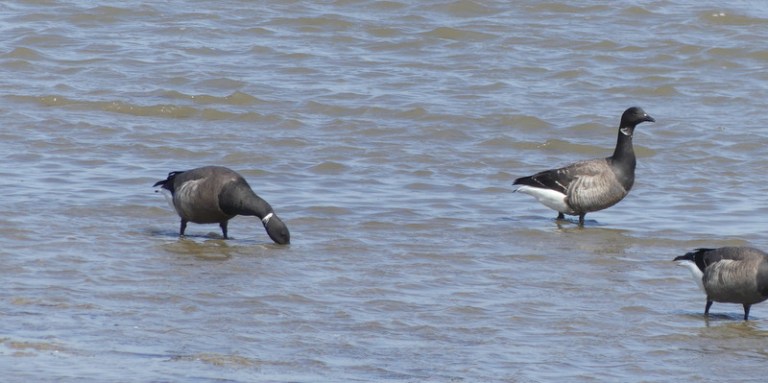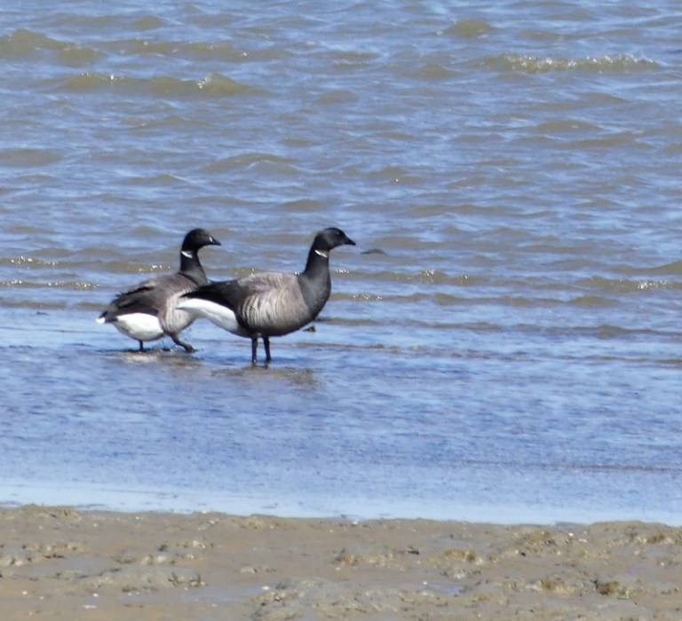 Op onze wandeling langs de Waddenzee bij Stroe heb ik nog meer foto’s van vogels gemaakt. De gans op deze foto kon ik niet goed thuisbrengen. Hij is sowieso van de Rotgans-familie, maar ik zag er ook iets anders aan. Hij zag lichter van kleur, meer grijs dan zwart. Ik ging thuis op onderzoek uit. Daar stuitte ik op de zeldzame Witbuikrotgans. Had ik met een Witbuik van doen? Maar overtuigd was ik niet. Het zijn kleine verschillen waar je op moet letten, witte buik, verder doorlopend naar de poten. Op de en foto zag ik het wel, op de andere niet. Ook van de nekkrans was ik niet overtuigd. Bij de ene foto was ik wist ik het zeker, als ik het vergeleek, bij de andere weer niet. Ik schakelde een vriendin in, die wel eens op pad is met echte vogelaars. Zo kwam ik op de site van waarneming.nl terecht. Daar zag ik meerdere waarnemingen, ook op deze dag 30-4-2017, van Witbuikrotganzen op Texel. Dus ze zijn er nog wel deze tijd van het jaar en in dezelfde buurt, want ook dat was iets waar ik aan twijfelde. Hij kan daar op doortocht zijn en ze staan te boek als schaarse wintergast.