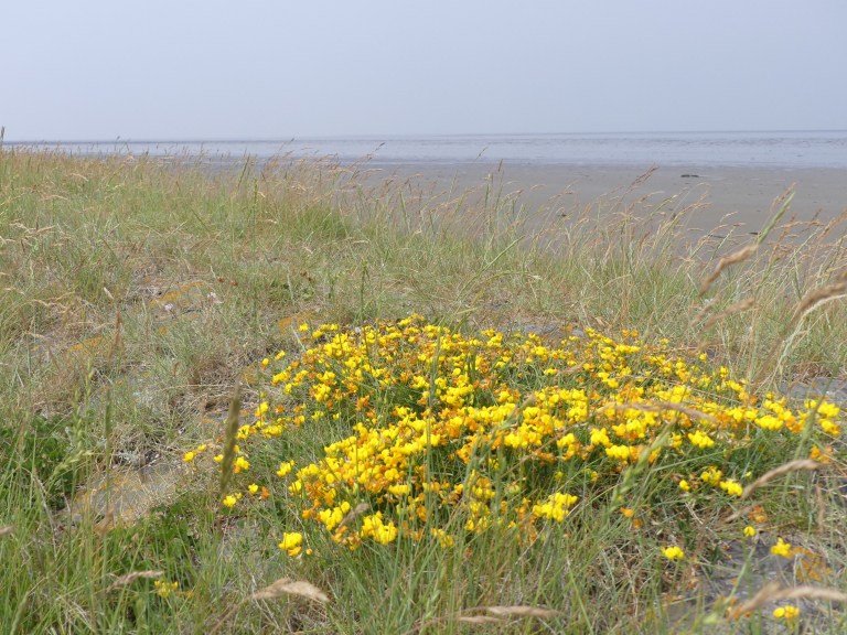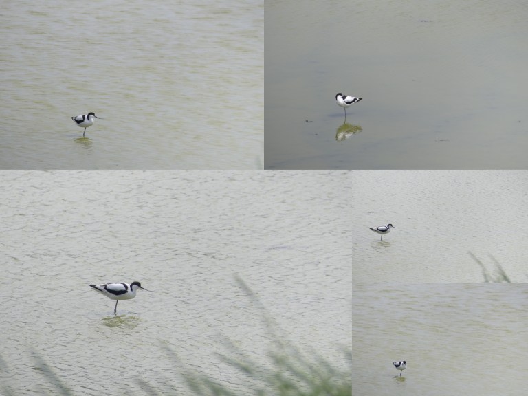 Al gauw echter betrok de lucht, maar wij vonden het niet erg om het met een wazig zonnetje te moeten doen. We wilden juist verkoeling. Het wandelen tegen de wind in zorgde evengoed nog voor genoeg zweetdruppels. Het was eb en daardoor waren er maar weinig vogels te spotten. In een meertje achter de dijk stonden wat kluten.