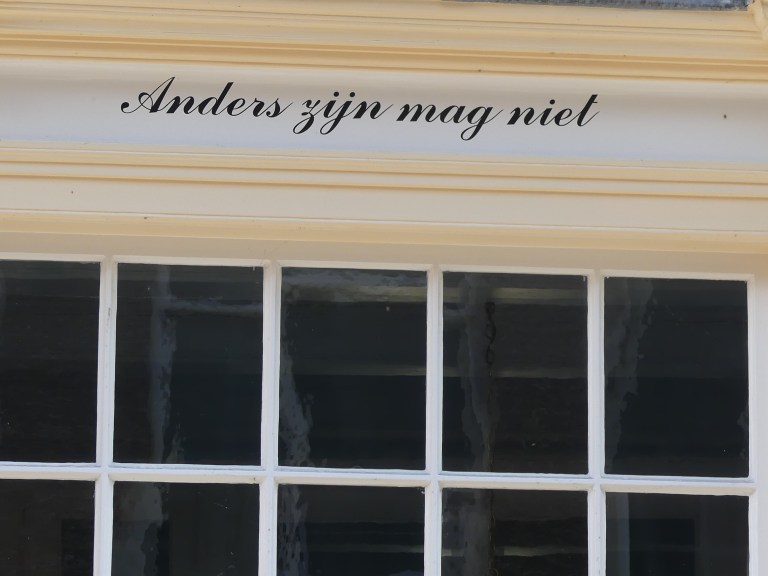 2. Ik vind de slogan goed! Want hoe vaak lees je tegenwoordig geen oordelen van anderen over mensen die in hun ogen anders zijn. Als iedereen hetzelfde zou zijn, hoe zou de wereld er dan uit zien? De spreuk maakt precies los wat het is: anders zijn mag niet….je gaat denken….en concludeert: het mag wél! 🙂