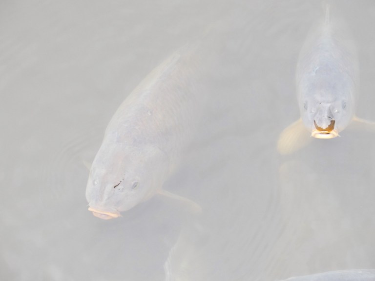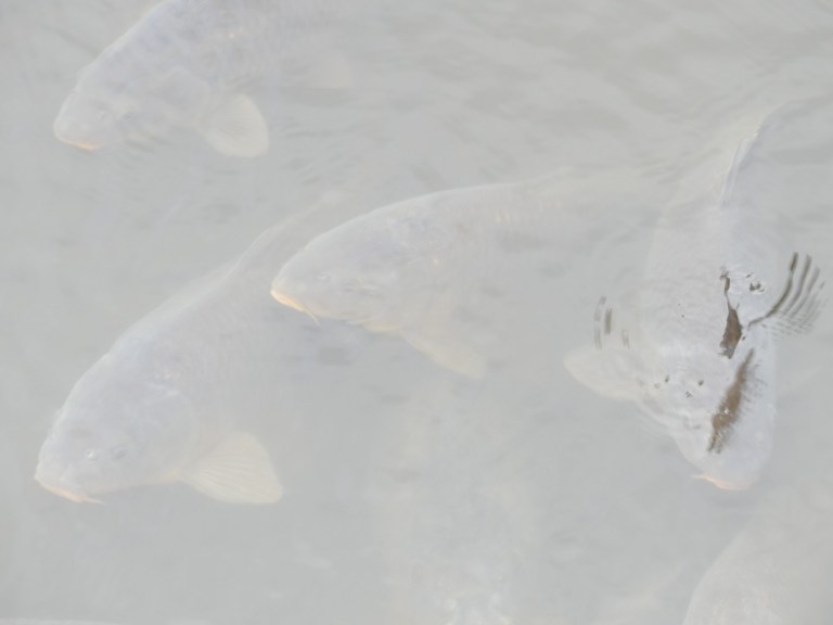 In één hoekje bij elkaar zwommen deze knapen van karpers. Ze hebben daar een goed leven zo te zien.