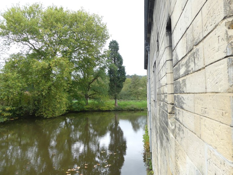 Op de brug over de gracht van kasteel Schaloen keek ik over de rand.