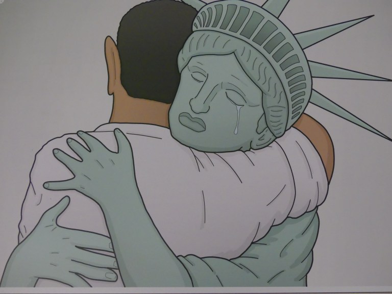 Bij de OBA (openbare bibliotheek Amsterdam) hingen 100 politiek getinte cartoons. Deze vond ik wel passen bij de tegenstelling met foto van deze week: bitter – zoet. Ik weet helaas niet wie de maker is.