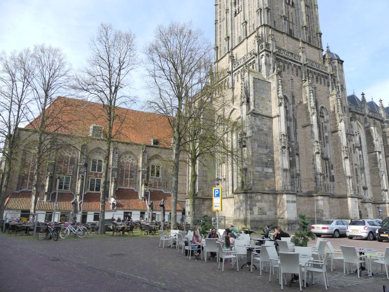 Op een gezellig terras bij de IJssel in de avondzon kwamen we heerlijk bij van de vermoeienis. Weer uitgerust en wel wandelden we nog even door het stadje. Op het sfeervolle plein was het druk op de meeste terrassen.