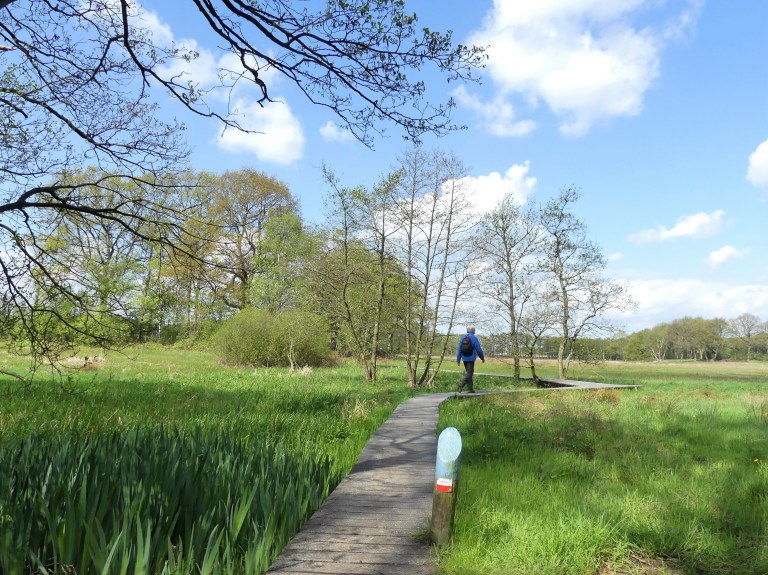 Omdat je over zo’n vlonderpad kunt lopen, kom je heel diep in het moerassige land.