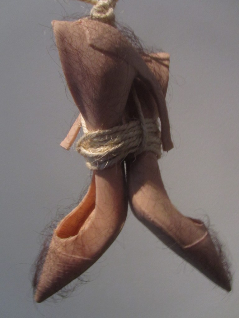 Bij de tegenstelling van deze week moest ik aan een tentoonstelling denken, die ik een paar jaar geleden had bezocht in het Centraal Museum in Utrecht. Het ging over ‘haar’ , dat vooral weelderig groeide op allerlei voorwerpen, maar er was ook van alles van haar  gemaakt. Bij deze foto van schoenen met naaldhakken zie ik de tegenstelling in één voorwerp verwerkt.