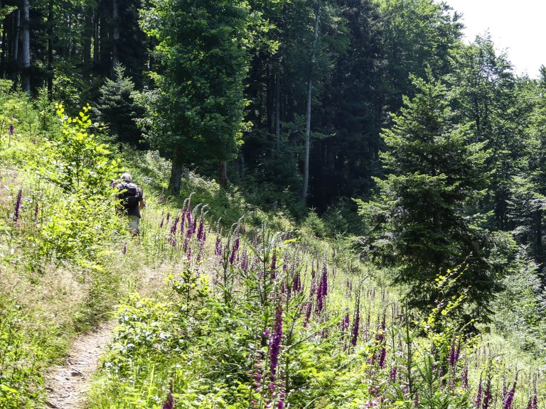 Toen kwamen de bossen, lekker koel, met goede wandelpaden, maar gaandeweg werden de hellingen steiler, het pad rotsachtiger, minder goed begaanbaar. Het vroeg het uiterste van je concentratie.