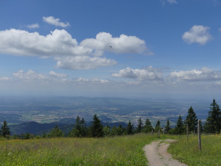 Ik begin daarom maar bij het hoogtepunt, wat ook het hoogstepunt was. Wij beklommen, nou ja, bewandelden de hoogste berg uit de omgeving, de Kandel. Het staat bekend als een pittige klim voor de geoefende wandelaar. (1243 meter hoog) Het was fantastisch de top te bereiken, maar het kostte wel heel wat zweetdruppels. Het eerste stuk was gewoon genieten, vooral van de uitzichten, het lopen langs de wijnvelden, de zon voelen op je huid, heerlijk.
