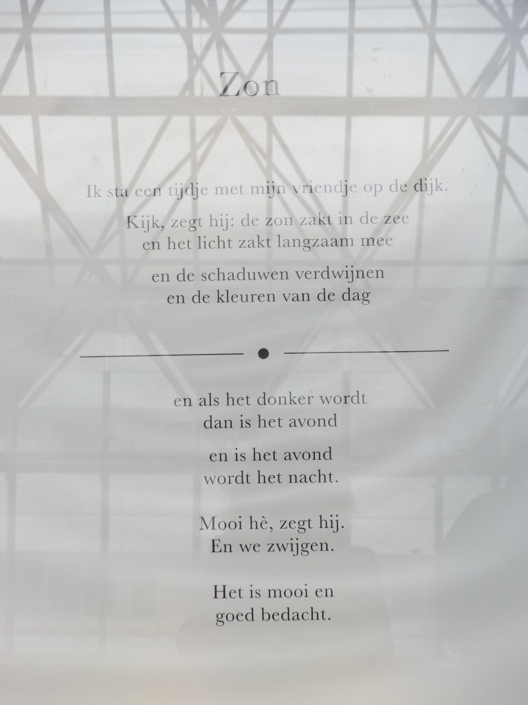 In het voorjaar nam ik deze foto van een gedicht over de zon op het perron van station Zwolle.