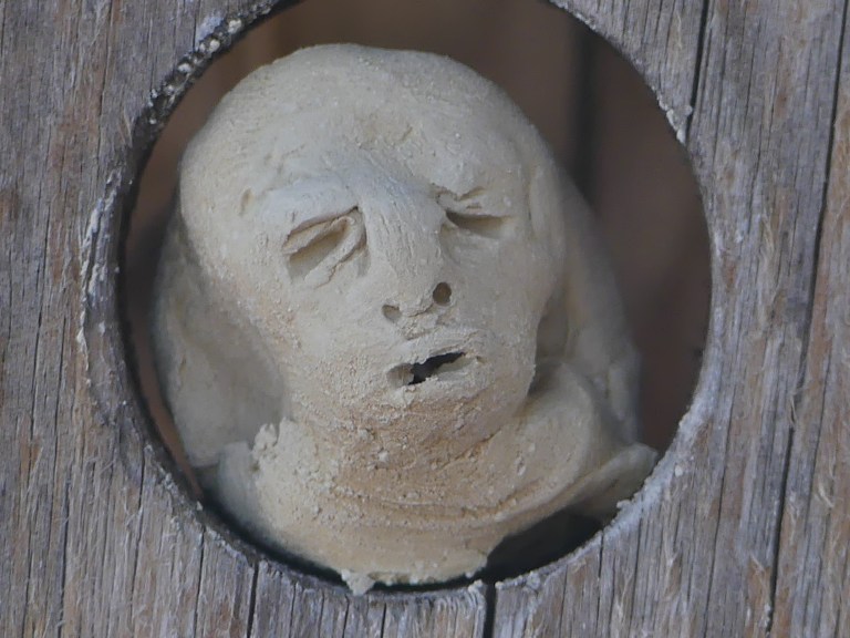 Eindelijk kan ik eens lekker op het terras van het oppashuis zitten, zonder  dat je weggejaagd wordt door de hitte of door de muggen. Valt mijn oog daar op een vogelhuisje met een gezichtje.