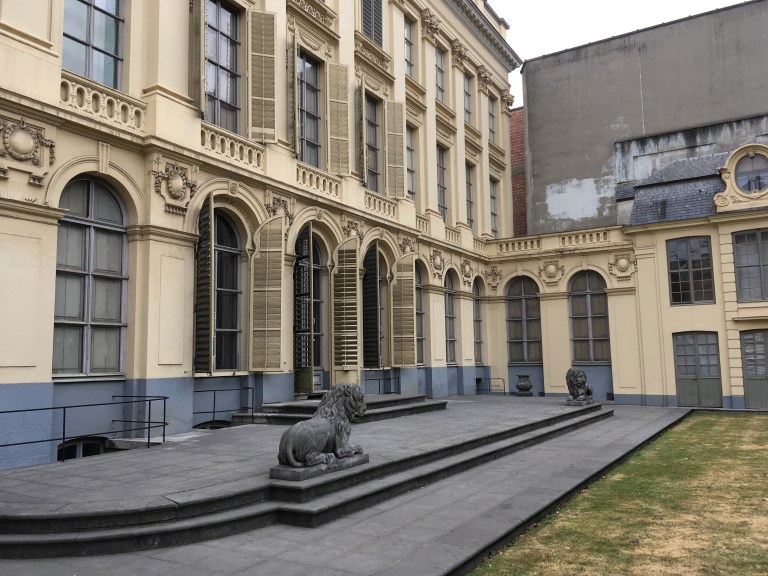 Dit keer Belgische poortwachters. Matroosbeek van de blog Grensgevallen stuurde ze met de volgende tekst: “Ik wou je twee poortwachters tonen die ik zag in een verlaten hotel. Een juweeltje verborgen midden in het shoppingcenter van Gent (Hotel d’Hane-Steenhuis). Je kunt er niet logeren, het staat er gewoon mooi oud te wezen en ik weet niet wat men er verder nu mee van plan is. Weet niet of dit echt poortwachters zijn want ze liggen op de grond voor de ingang.”