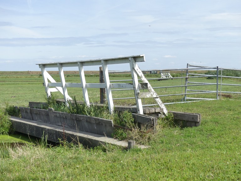 Na de thee liepen we weer de polder in. Hier hadden we nog niet eerder gelopen, omdat het er altijd te drassig is. Nu was de grond gewoon keihard. Via bruggetjes
