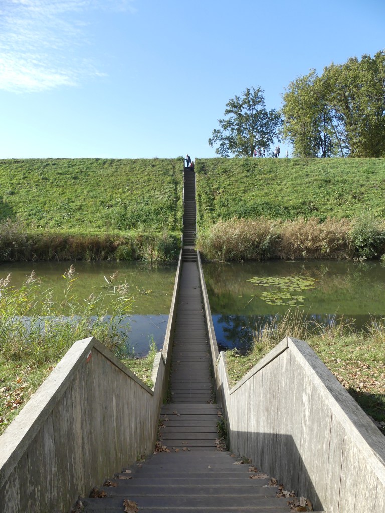 Vanaf december 2017 is er nog een blikvanger bijgekomen: de Pompejustoren. Ze noemen het een theater-uitkijktoren. Wij wilden onze krachten sparen en klommen er niet in. Bovenop heb je uitzicht over de hele West Brabantse waterlinie. Maar het gebouw was ook al indrukwekkend, als je er gewoon omheen liep. Zo’n bijzonder ontwerp op zo’n bijzondere plek.