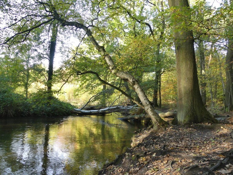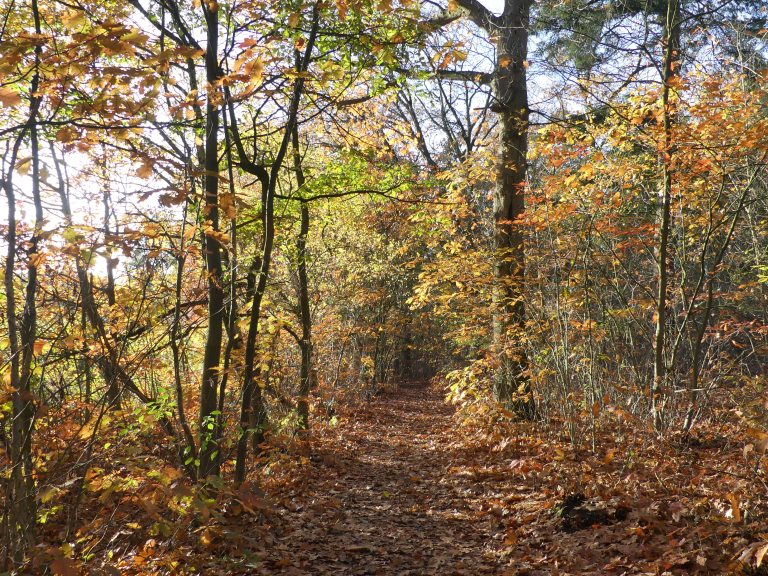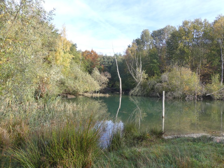 We vervolgden onze route vanaf Venlo. Het beloofde weer een dag met prachtig najaarsweer te worden. Langs het spoor liepen we de stad uit en het bos in. De Jammerdaalsche heide is een gebied met voormalige groeves, ontstaan door klei- en zandwinning.
