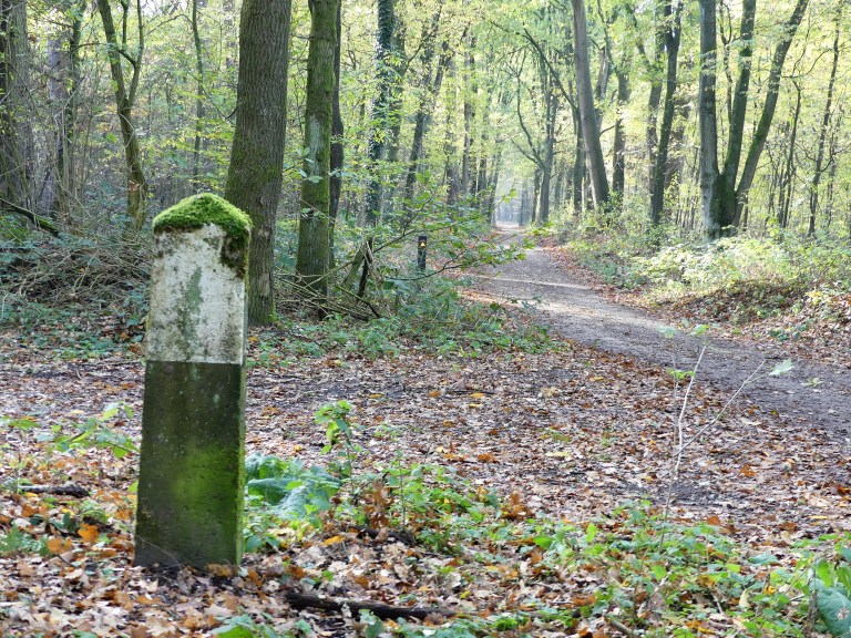 Ik was verrast door het feit, dat de grens van Nederland zo hoog gelegen is. Over een zogenaamd hoog-terras liep het Pieterpad heel wat kilometers door het bos. Het pad was de grens, overal stonden grenspalen. In onze looprichting lag Duitsland links en rechts in de laagte lag Limburg.