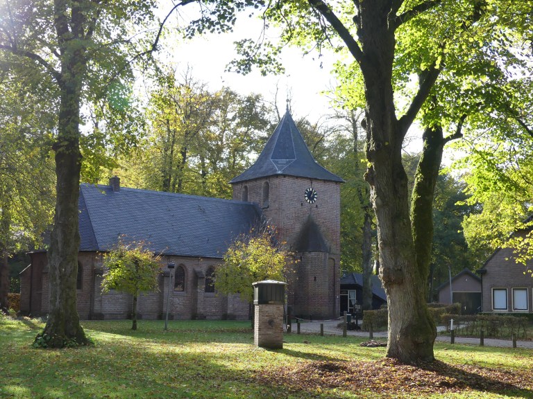 In Kootwijk kwamen we even in bewoonde omgeving, zodat we een kopje koffie konden drinken aan het kerkplein.