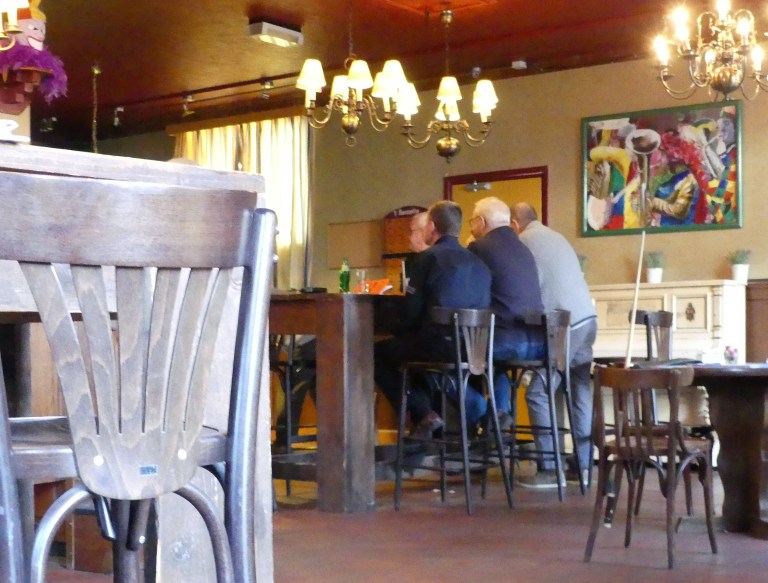 Dit dorp op ongeveer 6 kilometer voor het einde van de etappe konden we onszelf pas weer even warmen bij de kachel in het dorpscafé. Het was er weldadig gezellig.
