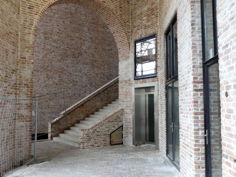 Net zoals in het kunstwerk is overal gebruik gemaakt van prachtige materialen. Afwisseling in stenen metselwerk met witte wanden en andere natuurlijke materialen geeft nu al een sfeervol effect.