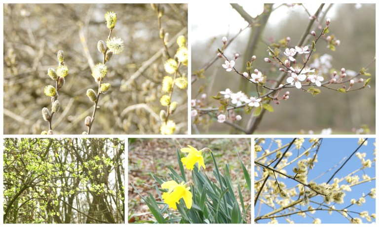 Na het landgoed was het nog enkele kilometers lopen door allerlei struweel waar je al goed de lente overal zag.