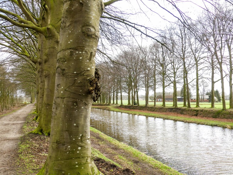 De pijlen naar ‘de dikke boom’ nodigden ons uit om een paar kilometer van onze route af te wijken om de waarschijnlijk dikste eik van Nederland te bewonderen. Imposant was de 450 tot 500 jarige boom wel, maar ik was een beetje teleurgesteld in de dikte.