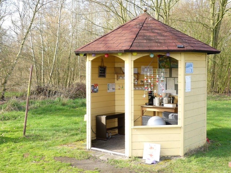 Het was te fris om ergens buiten onze lunch op te eten. Net op tijd diende dit rustpunt zich aan. Wat zijn het toch mooie uitvindingen. We zetten thee en zaten lekker uit de wind te lunchen.