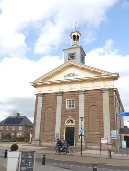 De kerkklok van Laren hoorden we al slaan voordat we iets van het dorp zagen liggen. Een grote weg ontnam ons het zicht. Eenmaal daar langs, liepen we het voormalige esdorp binnen. De aparte kerk is een voorbeeld van een ‘waterstaatkerk’. Deze kerken werden met overheidssteun gebouwd door waterstaatsingenieurs. Ze zijn te herkennen aan de neoclassicistische architectuur en het klokkentorentje. Een echte toren was veel te duur.
