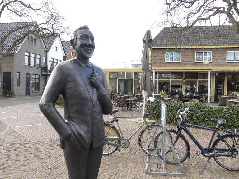 Laren blijkt de woonplaats van Albert Mol te zijn geweest, gezien zijn aanwezigheid daar op het dorpsplein. De laatste die ik daar verwachtte, maar hij stond vlak bij de bushalte, waar we wachtten op de bus naar Deventer.