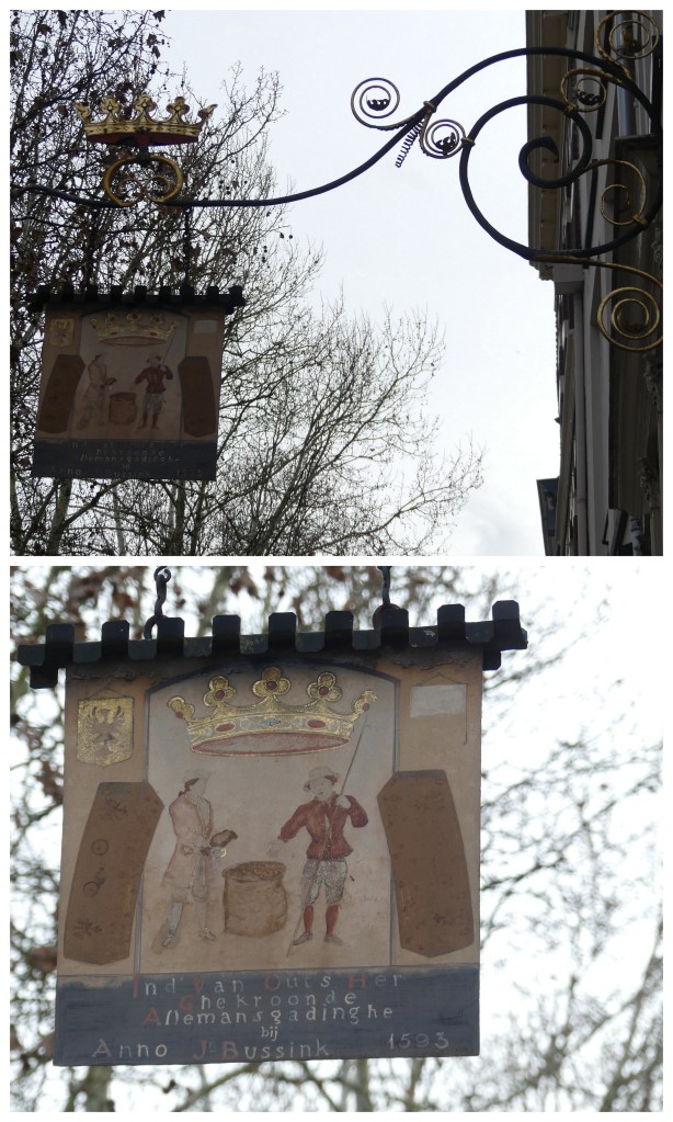 Je raakt er niet uitgekeken. Jaren geleden waren de prachtige uithangborden me hier al opgevallen. Deze hangen er vast nog! Ik maakte foto’s van het oude uithangbord bij hét koekwinkeltje van Deventer. En nog zo’n paar.